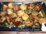Ingredientes: Para la salsa: 1 puerro 1 cebolla 1vaso de vino blanco 1 cucharada de harina 1 tomate 1 pimiento verde italiano 7 ajetes sal aceite de oliva virgen...