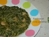Ingredientes: ½ kg de espinacas frescas 100 g de gambas 2 dientes de ajo 3 cucharadas de tomate triturado 100 g o ½ vaso de nata líquida para cocinar 4...