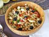 Ingredientes: 300gr. de garbanzos cocidos (podéis usar de bote) 1/2 pepino 1 trozo pimiento verde 1 tomate de ensalada pequeño 1 cebolleta tierna pequeña 10...