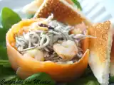 Ingredientes: Cogollos de lechuga 300 gr de langostinos 125 g rde gulas Tomates cherry o cereza 3 ó 4 dientes de ajo Una guindilla Sal y pimienta recién molida...