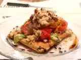 Ingredientes: masa de hojaldre 6 pimientos grandes (usé 3 rojos y 3 amarillos) cebolla caramelizada lechuga tomates 50 ml vinagre balsámico 2 cucharadas de...
