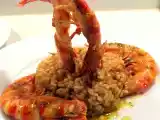 Ingredientes: ½ kg de langostinos aceite 1 diente de ajo laminado ½ cebolla y 1 pimiento verde 1 choco a trocitos vino fino una chispita de ñora langostinos...