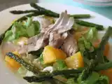 Ingredientes: 1 melva 1 patata 1 cebolla 1 pimiento verde 2 dientes de ajo 1 limón 1/2 vaso de vino blanco aceite de oliva virgen extra 6 setas sal pimienta...