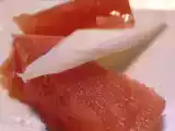 Ingredientes: 4 lonchas finas de cecina (largas) 180g mousse de foie de pato (180g-200g) 150g dulce de membrillo (El mío casero ; podéis ver la receta aquí).
