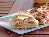 Ingredientes: 1 lámina de hojaldre carne de membrillo (mejor casero) queso de cabra (rulo) cebolla endulzada (de la Vieja Fábrica) azúcar moreno 1 yema de huevo...