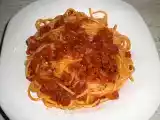 Ingredientes: 100 gr. de espaguetis 1 cebolla mediana 2 lonchas de bacon ahumado (yo he llegado a hacerlos también con lacón de pavo, en mis tiempos de...