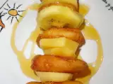 Ingredientes: 1 Masa de hojaldre de marca comercial de 230 gramos. 6 Plátanos maduros. 150 gramos de orejones de albaricoque (albaricoques deshidratados) 50...