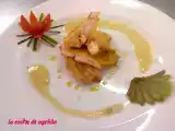 Ingredientes: Ingredientes para 2 personas: Trozos de Bacalao salado desalado 1 puerro pequeño 20gr de Queso Roquefort Harina para rebozar Un poco de roquefort...