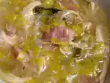 Ingredientes: Restos de pollo asado 6 puerros 100 g de bacón ahumado sal pimienta mantequilla aceite 1 1/2 litros de caldo de pollo 2 cucharada sopera de harina...