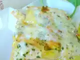 Ingredientes: 1 caja de pasta de lasaña 1 manojo de puerros 3 ó 4 zanahorias Salsa de tomate 50 g de harina 50 dl de leche 25 g de mantequilla Queso rayado