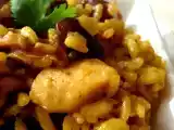 Ingredientes: Pollo troceado 1/2 cebolla 2 cucharadas de postre de curry 1 cucharada de postre de Ras al Hanout 1 cucharada de postre de cilantro (si no tenéis,...