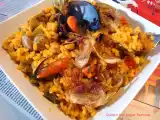 Ingredientes: 400 grms. de arroz 1 kg de mejillones 300 grms. de almejas (rossellona) 1 l. de caldo de pescado 1 pimiento verde pequeño 1/2 pimiento rojo 1/4 de...