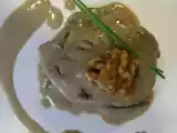Ingredientes: 1 solomillo de cerdo 200 g champiñones 100 g de mantequilla 1 vaso caldo de carne 1/2 vaso vino blanco Harina 4 cuch de tomate frito 2 ajos Aceite...