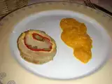 Ingredientes: 1 solomillo de cerdo abierto para rellenar Una tortilla francesa de 3 huevos 1 bote de pimientos del piquillo Lonchas de jamón serrano Aceitunas...