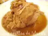 Ingredientes: 2 codillos de cerdo 50 g jamón serrano en lonchas ½ vaso de vino blanco seco 1 ½ cucharadas de harina 2 ½Cucharadas de aceite de oliva 1 Ramitas...