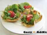 Ingredientes: 100 gr de parmesano rallado 1 cda de harina 1 cda de romero fresco picado 50 gr de brotes de espinaca 4 fresas 1 cda de almendra cortada a láminas...