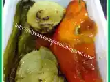Ingredientes: 2 berenjenas 4 tomates 2 pimientos rojos 2 cebollas sin pelar 2 dientes de ajo sin pelar aceite de oliva una cucharadita de orégano 1/2 cta de...