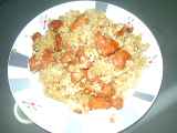 Ingredientes: Carne troceada Tomate guisado Carne frita, que es capaz de estar en casa más rico guiso Aceite de Ajo Sal Oréganovino Virutas para acompañar