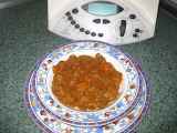 Ingredientes: 45 g de aceite de oliva 70 g de cebolla 200 g de carne picada 50 g de chorizo en taquitos 350 g de agua templada 200 g de tomate frito 150 g de...