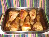 Ingredientes: 3 cuartos delanteros de pollo ( muslos con contramuslos ) 1 sobre de sopa de cebolla 3 zanahoria gorditas 2 puñaditos de almendras peladas 1 puñado...