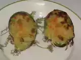 Ingredientes: 4 aguacates maduros 250 grs. de gulas 200 grs. de langostinos queso rallado 1 diente de ajo aceite 100 grs. de harina 1 litro de leche sal y pimienta