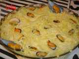 Ingredientes: 1 kg de mejillones 0,5 kg de almejas 1 cucharada de harina 10 cucharadas de aceite de oliva 2 cebollas 400 g de tomates triturados en conserva 6...