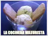 Ingredientes: 40 grs de crispy snax de Milka 100 grs de melón ?piel de sapo? 2 bolas de helado de chocolate 1 bola de helado de vainilla