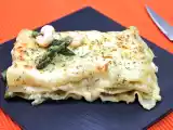 Ingredientes: 1 litro de bechamel (casera o comprada) 600 gr de espinacas (cocidas. Caseras o en lata) queso de cabra 16 laminas de pasta de lasaña