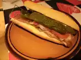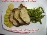 Ingredientes: 1 trozo de lomo de unos 800 g. 4 pimientos verdes. 2 dientes de ajo. Una cucharada de orégano. 6 cucharadas de aceite de oliva. Sal y pimienta.