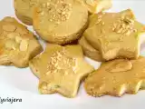 Ingredientes: 130 gr azúcar glas 150 gr manteca de cerdo 280 gr harina 40 gr almendras en polvo 1 cdita canela en polvo ralladura 1 limón sésamo (para decorar)
