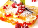 Ingredientes: 2 planchas de pasta filo 4 cucharadas de frutos rojos 1 piña 4 cucharadas de agar-agar 1 nuez de mantequilla aceite de oliva 2 natillas ligeras de...