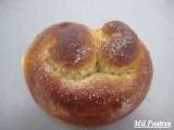 Ingredientes: 1/4 kilo de harina floja ¼ kilo de harina fuerte 2 huevos 1 dl. y ½ de leche 30 g de levadura de panadería instantánea 75 g de mantequilla 75 g de...