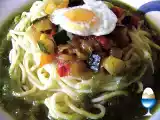 Ingredientes: 300 grs de carne picada de ternera. 350 grs de spaguetti de verduras 1 bote de pisto marca Hilda 6 cucharadas de salsa de tomate frito. 2 dientes...