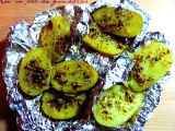 Ingredientes: Patatas con piel, que no sean muy grandes. Papel Albal,opcional. Sal, pimienta negra, guindillas secas, ajo, perejil y aceite de oliva del bueno.