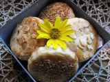 Ingredientes: 2 yemas de huevo 1 taza de azúcar 1 taza de nata (usé 200 ml) 1 pizca de sal 3 tazas de harina (yo usé algo más) 1 cucharadita de bicarbonato