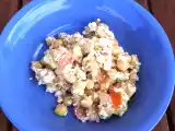 Ingredientes: 200 gramos de garbanzos de bote o puestos a remojo 24h y hervidos 1 bote de requesón 1 tomate 1 pepino pimienta molida blanca una pizquita de...