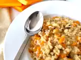 Ingredientes: 160 gr de arroz redondo (arborio o carnaroli) 50 gr de cebolla 30 gr de queso parmesano rallado 300 gr de calabaza (pelada y sin pepitas) 20 gr de...