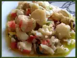 Ingredientes: 500 gramos de langostinos cocidos y pelados 500 gramos de pulpo en trozos ya cocidos 500 gramos de mejillones 2 colas marinas fileteadas 10 palitos...