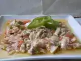 Ingredientes: 2 tentáculos de pulpo cocido (para cómo cocerlo ver observaciones) en rodajas y en trozos, sin buscar regularidad. 1/2 cebolla tierna picada 1/3 de...
