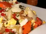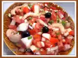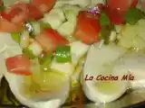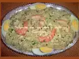 Ingredientes: 1 lata grande de atún en aceite vegetal. 4 huevos. aceitunas negras y verdes. 400 g de gambas peladas. 450 g de palitos de cangrejo. salsa rosa o...