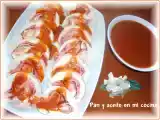 Ingredientes: 200 g de Gnocchi 1 diente de ajo 50 g de nueces 1 cuchara de pan rallado pimienta nuez moscada 1/2 vaso de agua 1 vasito de nata. Pollo asado.
