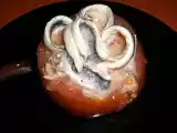 Ingredientes: 8 tomates maduras 250 g de atun en aceite 1 limon 100 g de queso cremoso 4 aceitunas negras 1 c.sopera de mostaza a la antigua perejil 2 c.sopera...