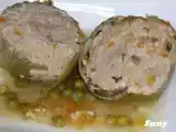 Ingredientes: 8 alcachofas grandes 500 g de carne picada 1 cebolla 1 tomate maduro 2 dientes de ajo 1 bote de guisantes de 200 g 1 cucharada sopera de pan...