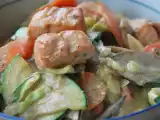 Ingredientes: 2 filetes ó 300 g de filetes de pollo cortados en tiritas. 1 puerro ( cortado en aritos) 1 cebolla ( si es posible roja ) 1 calabacín 100 ml de...