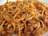 Ingredientes: 30 gramos de pasta de espaguetis por persona 10 salchichas frescas (tipo de carne que queráis) Cebolla (como media, pero eso va en gustos) Ajo...