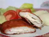 Ingredientes: 8 escalopines de lomo 2 lonchas de pechuga de pavo 2 lonchas de queso de sandwich 4 pimientos del piquillo verdes 1 huevo harina pan rallasdo sal...