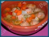 Ingredientes: 1 caparazon de pollo Sopa de verdura y albondigas 1 pechuga de pollo picada 1 l caldo de pollo 200 g zanahorias 200 g cebollas 200 g calabacin 200...