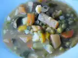Ingredientes: 1 nabo 150 g de col 2 ramitas de apio 2 guindillas verdes 300 g de calabaza 50 g de judías verdes 50 g de zanahorias 1 cellolla 2 grandes puerros...