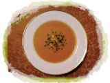 Ingredientes: 200 g pulpa de calabaza 1 diente de ajo, prensado 200 ml caldo de verdura 1 c/s aceite de oliva 2 lonchas de jamón serrano Sal y pimienta