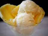 Ingredientes: Helado: 240 ml nata agria 1 yogur 60 ml. leche 95 g azúcar una pizca sal zumo de un limón Sorbete: 1 lata de 580 g (peso neto, 340 g escurridos) de...